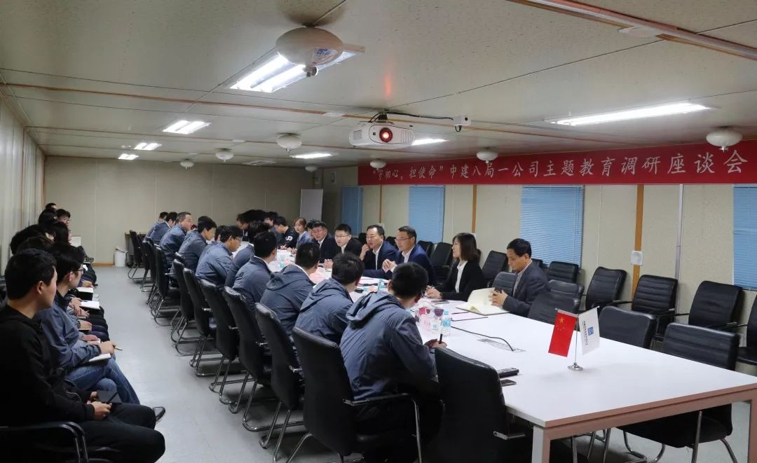 在項(xiàng)目部會(huì)議室,董文祥為海外領(lǐng)導(dǎo)班子、項(xiàng)目全體員工講授“守初心,擔(dān)使命,奮力譜寫‘中建八一’高質(zhì)量跨越發(fā)展新篇章”的主題黨課。指出,海外事業(yè)部自成立起就肩負(fù)著助推公司轉(zhuǎn)型升級、跨越發(fā)展的重要使命,對海外發(fā)展提出了“守初心,堅(jiān)定大海外理想追求”、“擔(dān)使命,堅(jiān)守戰(zhàn)略定力”、“抓落實(shí),力爭中建排頭”三點(diǎn)要求。隨后,董文祥組織召開了“守初心,擔(dān)使命”的主題教育調(diào)研座談會(huì)。