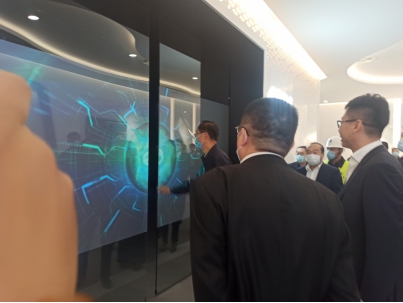 隨后,韓金峰一行來(lái)到中地塊M7#樓京東云展廳內(nèi)部,聽(tīng)取了京東代表的詳細(xì)介紹,并切身體驗(yàn)了引入的“黑科技”技術(shù),韓金峰親手觸碰數(shù)字經(jīng)濟(jì)產(chǎn)業(yè)數(shù)控之門(mén),通過(guò)數(shù)字大屏對(duì)先行區(qū)建設(shè)情況與規(guī)劃進(jìn)行了了解。2018年9月,京東集團(tuán)與先行區(qū)達(dá)成全面戰(zhàn)略合作,依托戰(zhàn)略資源助力山東傳統(tǒng)產(chǎn)業(yè)升級(jí),助力新舊動(dòng)能轉(zhuǎn)換。