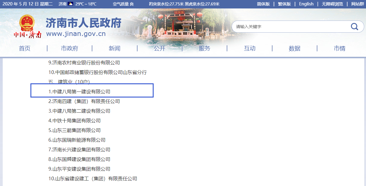 近日,濟(jì)南市政府官網(wǎng)公布了創(chuàng)新發(fā)展突出貢獻(xiàn)企業(yè)名單,對(duì)建筑業(yè)、制造業(yè)等9個(gè)板塊,共計(jì)110家企業(yè)進(jìn)行表彰,建筑業(yè)共有10家企業(yè)入選,中建八局一公司榮登榜首!