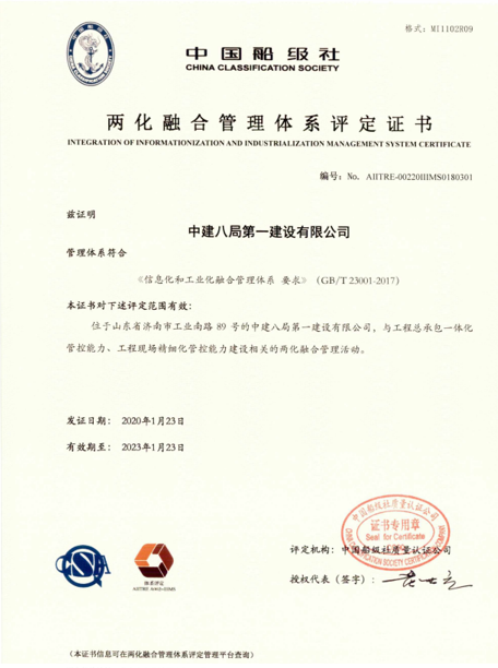 中建八局一公司“兩化融合”通過工信部認(rèn)證