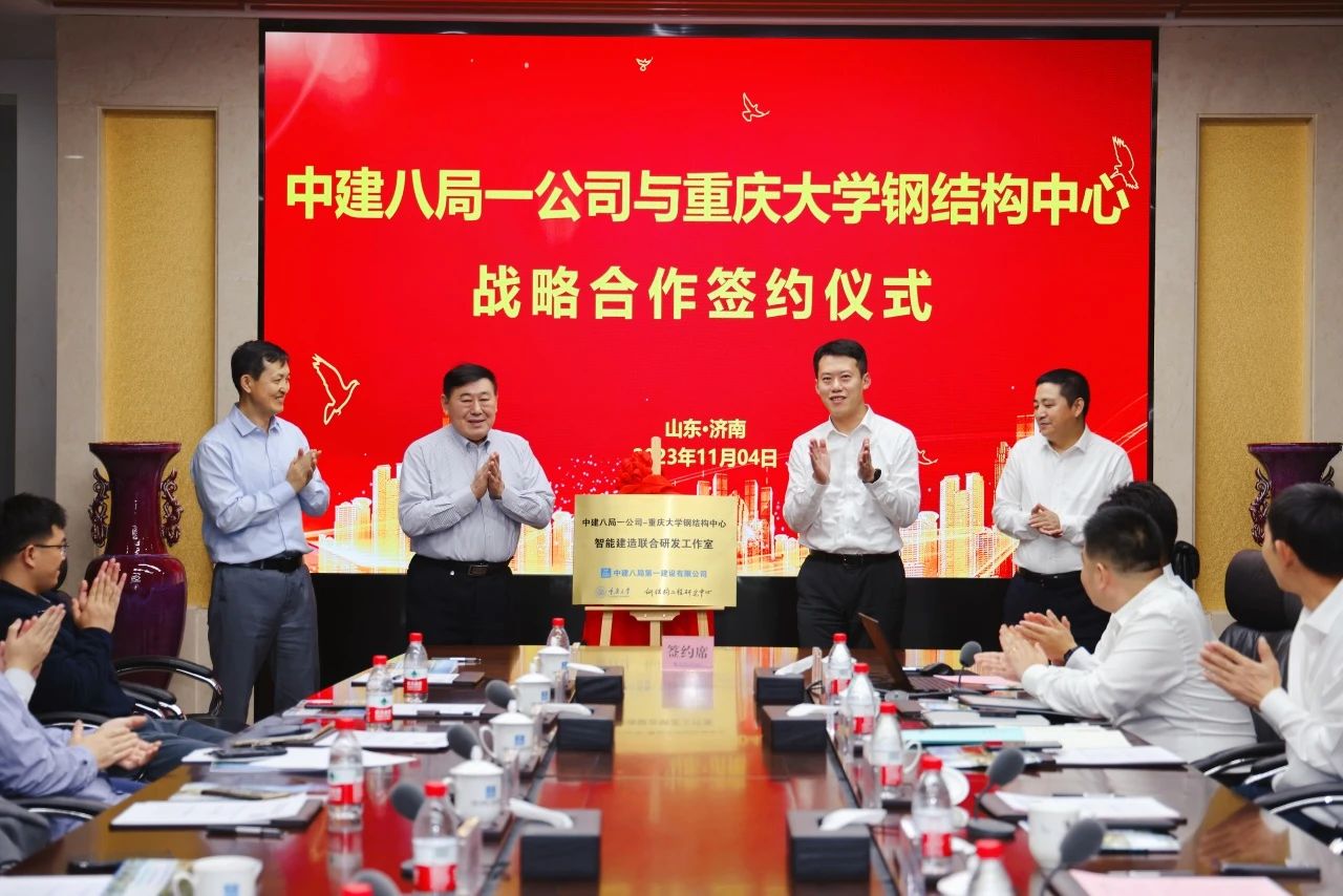 11月4日,中建八局一公司與重慶大學(xué)鋼結(jié)構(gòu)中心智能建造聯(lián)合研發(fā)工作室揭牌儀式暨關(guān)鍵課題啟動會在濟(jì)舉辦。