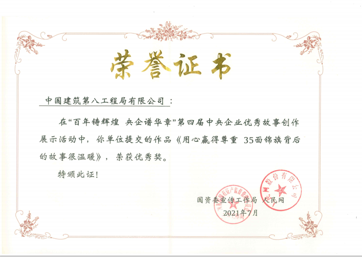 中建八一《用心贏得尊重,35面錦旗背后的故事很溫暖》榮獲國資委中央企業(yè)優(yōu)秀故事優(yōu)秀獎(jiǎng)