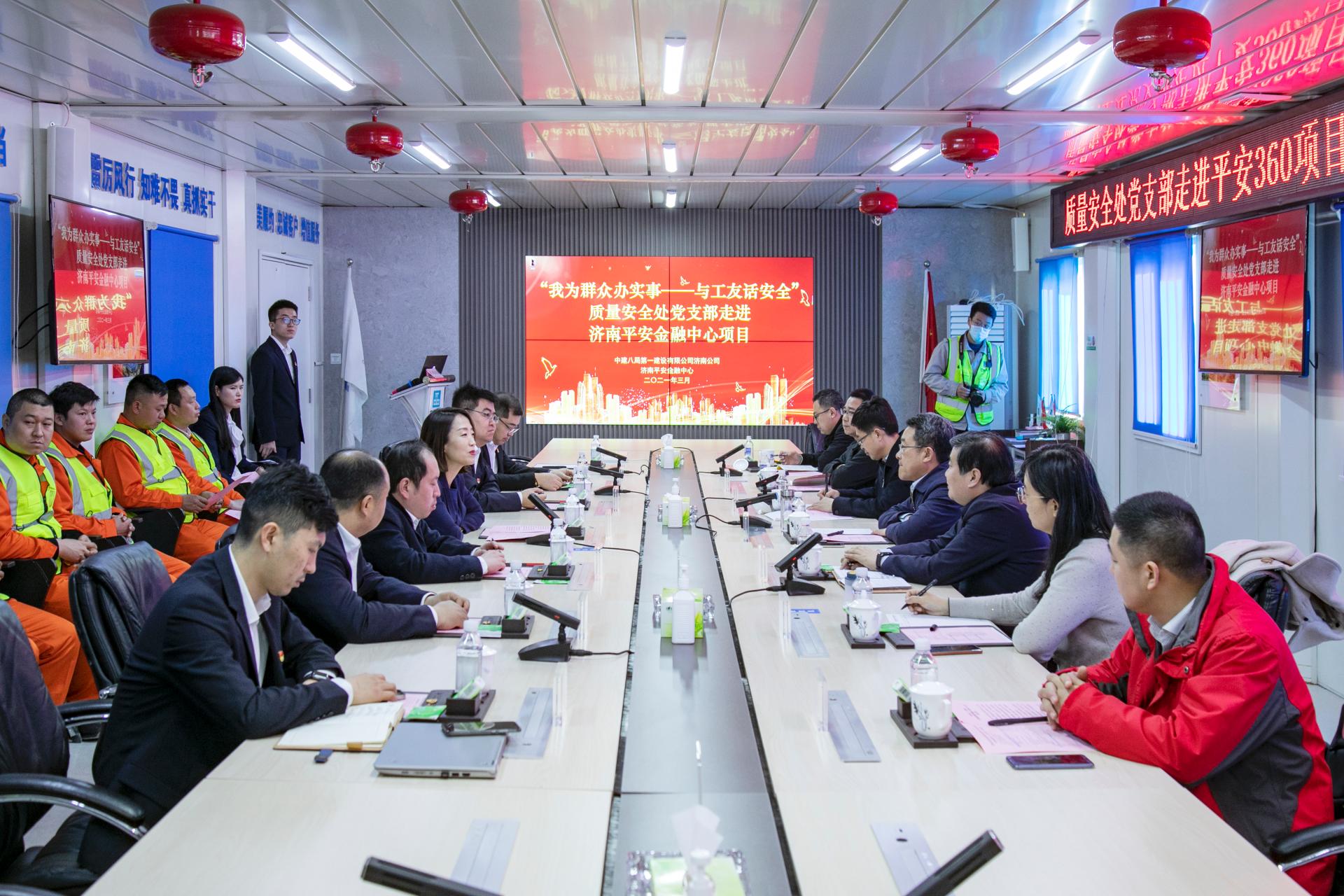 3月25日,在濟南中央商務區(qū)360米超高層項目,山東省住房和城鄉(xiāng)建設廳質(zhì)量安全處黨支部與中建八局一公司黨委開展2021年度黨建同創(chuàng)共建啟動儀式暨“我為群眾辦實事——與工友話安全”活動。