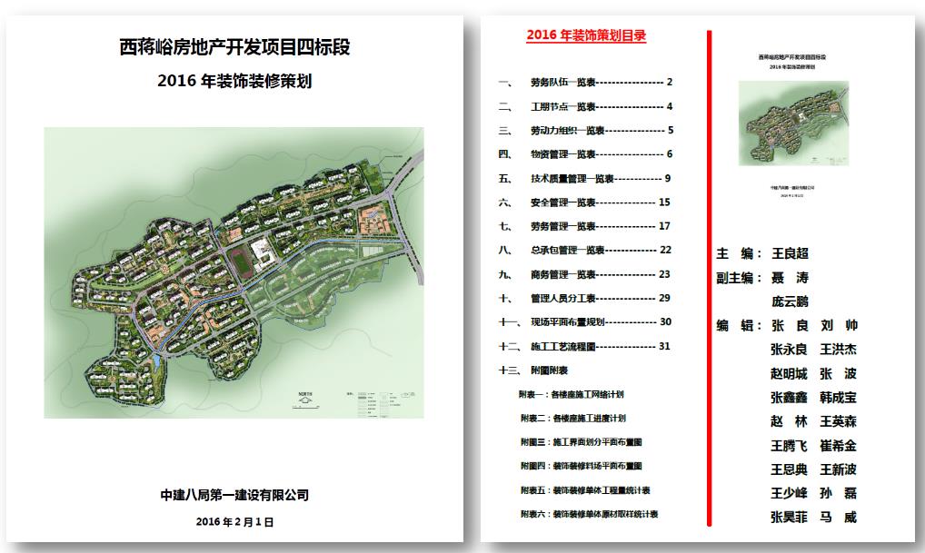 如何確保19棟單體工程裝飾階段各項指標(biāo)的完成,他也是費(fèi)盡了心機(jī),組織項目管理人員歷時兩個多月的時間,編制完成《西蔣峪四標(biāo)段2016年裝飾裝修策劃書》,將“工期節(jié)點(diǎn)一覽表”、“勞動力組織一覽表”、“物資采購技術(shù)參數(shù)一覽表”、“成本控制措施一覽表”、“裝飾做法五張圖”、“質(zhì)量控制要點(diǎn)”、“安全管控要點(diǎn)”等13個方面全部收入囊中,對住宅工程裝飾裝修全生命周期進(jìn)行精細(xì)策劃。同時于2016年5月17日成立了“王良超項目精細(xì)化管理創(chuàng)新辦公室”。