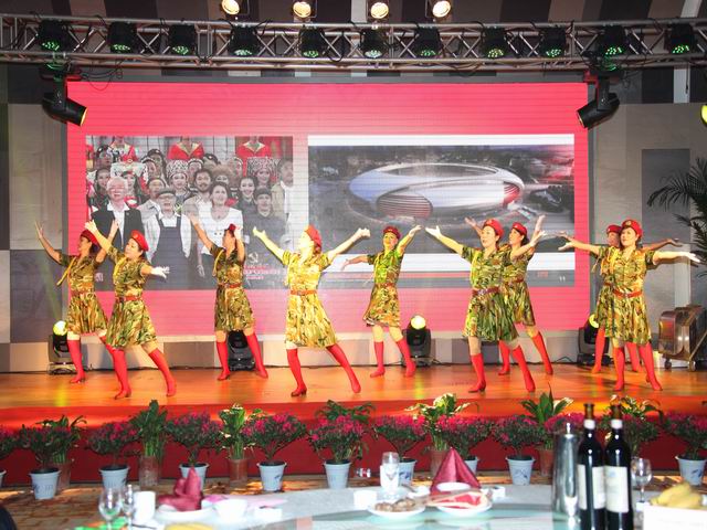 團(tuán)拜會(huì)演出在富有激情的舞蹈《南非風(fēng)情》中拉開(kāi)了帷幕。整臺(tái)演出精彩紛呈,高潮迭起。員工自編自演的各類(lèi)節(jié)目豐富多彩,幸運(yùn)大抽獎(jiǎng)更是讓員工驚喜連連,演出現(xiàn)場(chǎng)歡聲笑語(yǔ)不斷。相聲《咱公司的那點(diǎn)事》、小品《牛郎與織女》、啞劇《候車(chē)室的故事》讓現(xiàn)場(chǎng)觀(guān)眾笑成一片;歌曲《相親相愛(ài)》唱出了一公司員工團(tuán)結(jié)互助是一家人的心聲;歌伴舞《荷塘月色》在現(xiàn)場(chǎng)燈光和舞臺(tái)的配合下,為大家呈現(xiàn)了一幅唯美的畫(huà)面;別具風(fēng)格的三句半《公司喜事多》,讓大家過(guò)了一把情景劇版三句半隱;情景詩(shī)朗誦《閃亮的日子 閃亮的青春》則為大家講述了一群年輕人到工地后半年的切身感受;歌手楊坤的《無(wú)所謂》被演員模仿的惟妙惟肖,足以以假亂真;舞蹈串燒《青春旋律》讓大家感受到了公司年輕人的青春活力;小品《施工情》講述了公司員工舍小家顧大家、令行禁止、使命必達(dá)的精神,得到了現(xiàn)場(chǎng)觀(guān)眾的共鳴。演出在氣勢(shì)磅礴的《走向復(fù)興》中圓滿(mǎn)落幕,出席團(tuán)拜會(huì)的領(lǐng)導(dǎo)同志走上舞臺(tái),同全體演員合影留念。