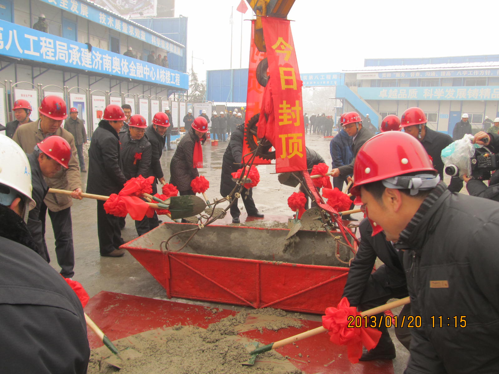 1月20日,奧體金融中心A棟樓項目隆重舉行主體封頂儀式。山東省農(nóng)村信用社聯(lián)合社理事長、黨委書記宋文�及聯(lián)合社全體班子成員、聯(lián)合社駐濟各機構(gòu)負責人、魯班置業(yè)及監(jiān)理公司負責人、公司黨委書記許書記、黨委副書記、工會主席董書記參加了封頂儀式。