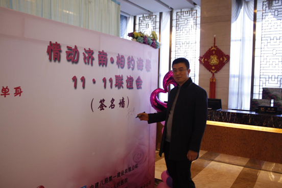 2016年11月11日,由中建八局一公司、濟(jì)南市立一院、濟(jì)南市立五院三家單位主辦,濟(jì)南分公司承辦的“情動(dòng)濟(jì)南?相約海泰 11?11聯(lián)誼會(huì)”在倪氏海泰酒店隆重舉行,濟(jì)南市總工會(huì)副主席蒲玉全、濟(jì)南市衛(wèi)計(jì)委副主任張振民、團(tuán)委書記鄧陽、濟(jì)南市第一人民醫(yī)院黨委書記辛然、濟(jì)南市第五人民醫(yī)院副院長(zhǎng)孫玉環(huán)、濟(jì)南分公司黨總支書記霍文濤、公司黨委工作部副部長(zhǎng)齊昕新等領(lǐng)導(dǎo)出席了活動(dòng)現(xiàn)場(chǎng)。