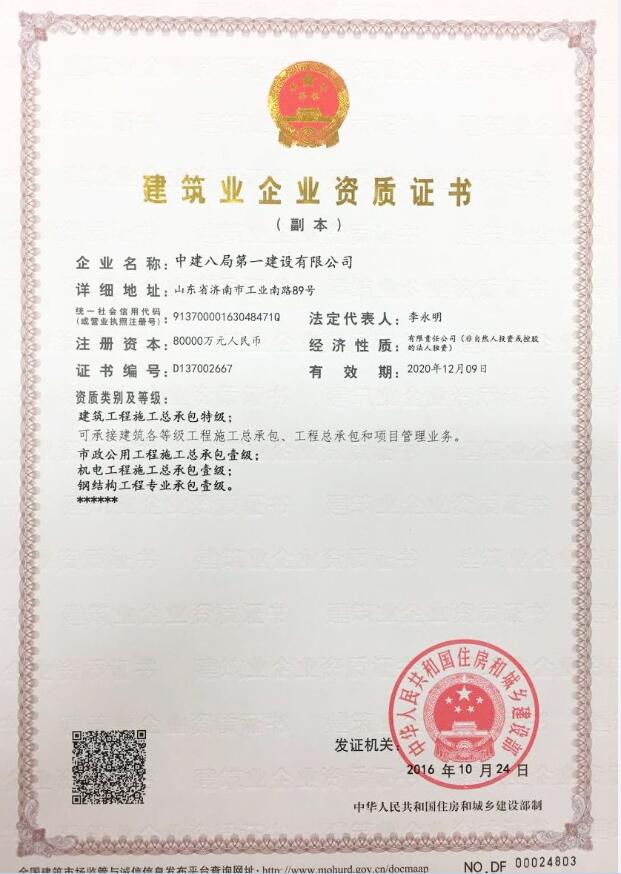 近日,公司又添兩項(xiàng)新資質(zhì):市政公用工程施工總承包壹級(jí)、電力工程施工總承包叁級(jí)、石油化工工程施工總承包叁級(jí),為中建“八一”轉(zhuǎn)型升級(jí)奠定了基礎(chǔ)。