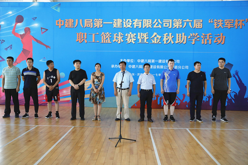 8月19-20日,公司第六屆“鐵軍杯”職工籃球賽暨2017“金秋助學(xué)”公益捐贈(zèng)啟動(dòng)儀式在山東省體育學(xué)院籃球訓(xùn)練館成功舉辦。20日下午,為期兩天的比賽圓滿完成各項(xiàng)賽程。山東省總工會(huì)副主席王星海、中建八局山東分局紀(jì)委書(shū)記張繼穎、公司黨委副書(shū)記、工會(huì)主席王有標(biāo)出席閉幕式,并為獲獎(jiǎng)代表隊(duì)、運(yùn)動(dòng)員頒獎(jiǎng),公司其他相關(guān)人員陪同參加了閉幕式。