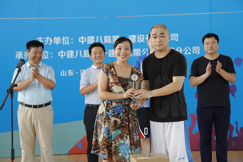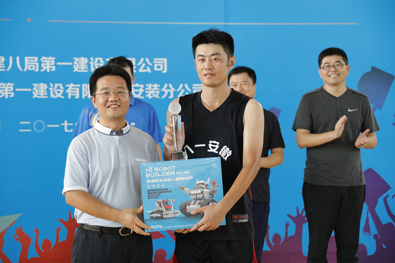 一公司安裝分公司黨總支書(shū)記、工會(huì)主席梁忠誠(chéng)為最有價(jià)值球員(MVP)頒獎(jiǎng)