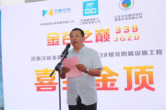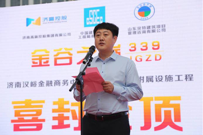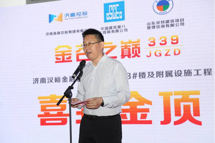 濟南高新控股集團董事長李昊、總經理王賡,凱賓斯基中國區(qū)域戰(zhàn)略策劃總監(jiān)裴睿赫、山東貝特建筑項目管理咨詢公司有限公司董事長秦昶,中建八局副總經理、山東分局局長張作合 ,公司總經理哈小平等領導出席了封頂儀式。