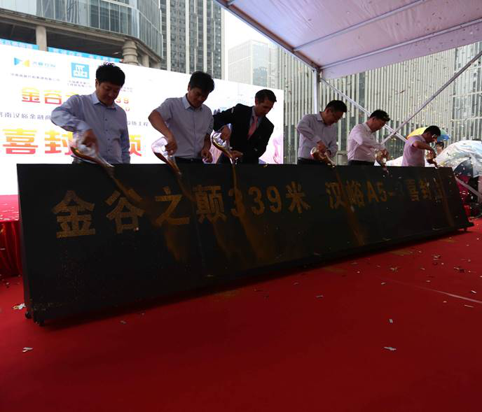 2018年6月9日,在一場夏日細雨中,濟南漢峪金融商務中心A5-3#樓順利封頂。隨著最后一斗混凝土被吊上339米高空,標志著濟南的天際線再一次被刷新。