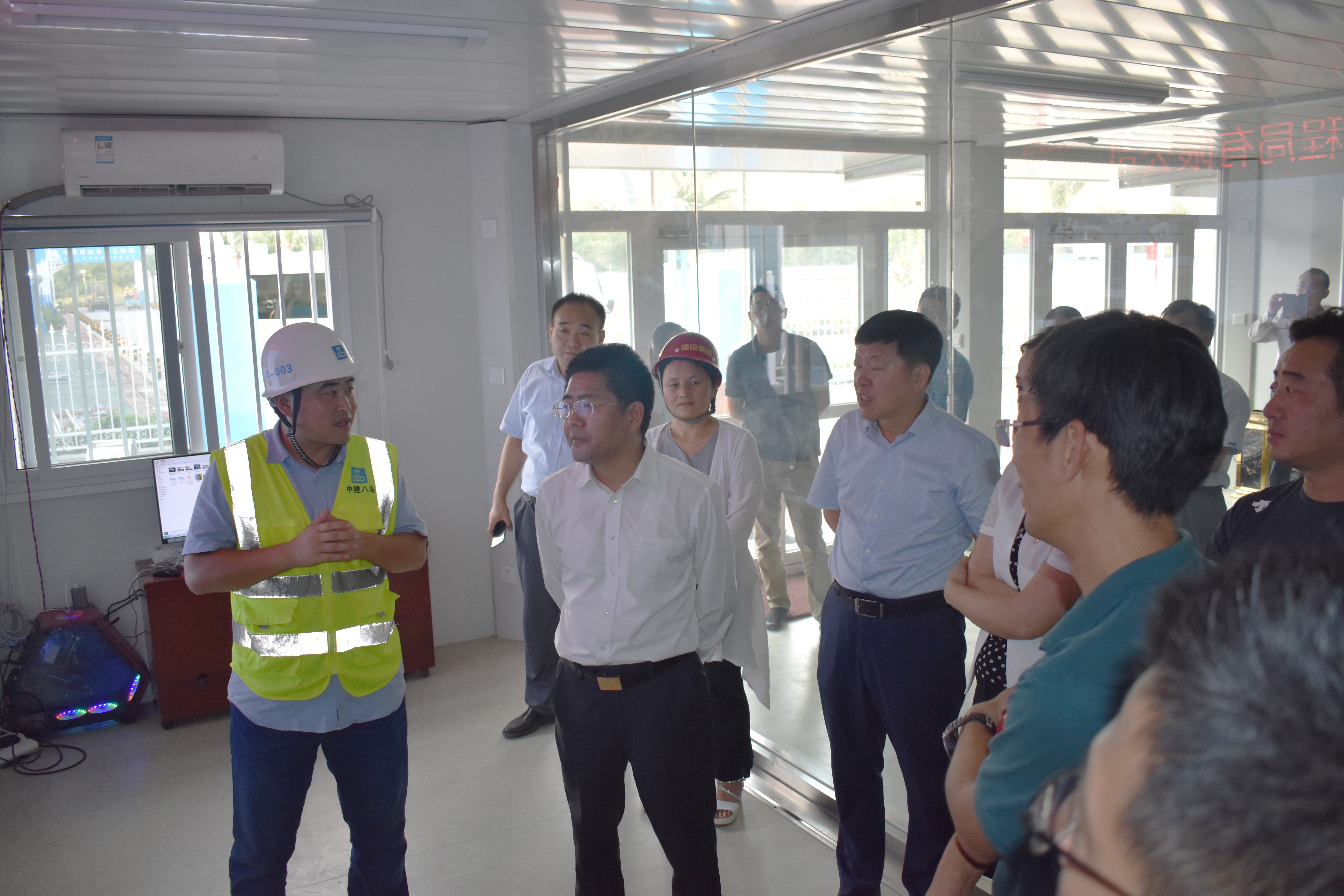 9月11日17:00時(shí),濟(jì)南市槐蔭區(qū)區(qū)長(zhǎng)、區(qū)委副書(shū)記朱玉明一行7人對(duì)山東省科技館新館項(xiàng)目進(jìn)行考察調(diào)研,項(xiàng)目全體工作人員熱烈歡迎,由項(xiàng)目總工羅忠鵬、商務(wù)經(jīng)理周廣瑞全程陪同。
