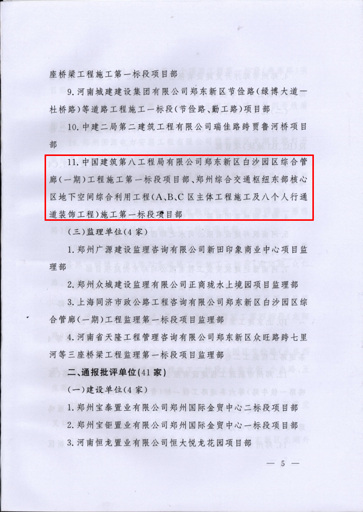 白沙園區(qū)綜合管廊再獲鄭東新區(qū)管委會通報表揚