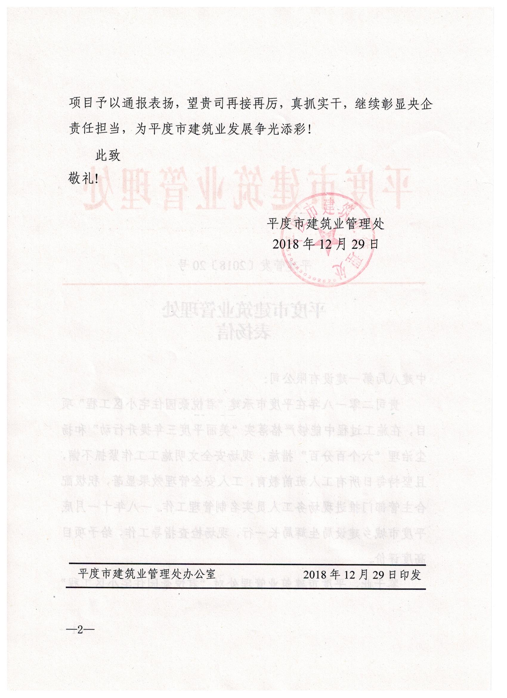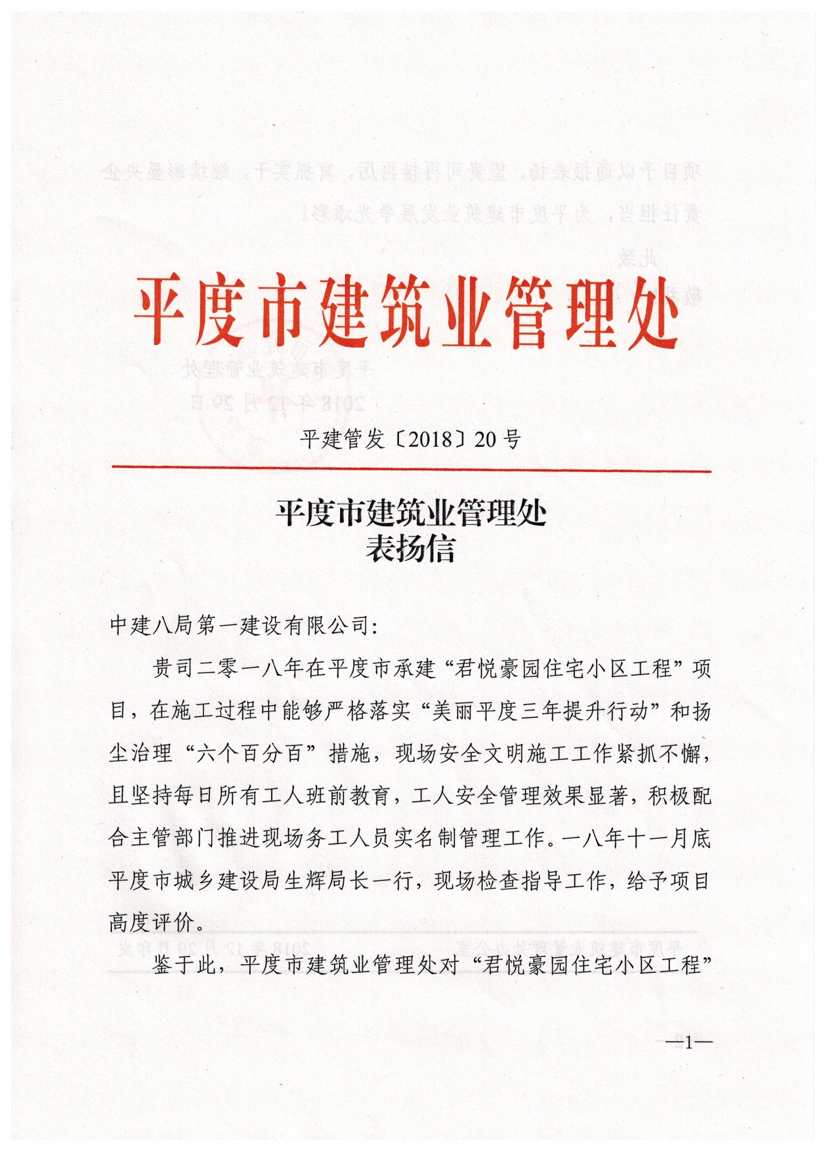 近日,青島公司平度君悅豪園住宅小區(qū)項目喜獲平度市城鄉(xiāng)建設局表揚信,信中著重贊揚我司項目上開展的安全文明施工各項具體工作,并對工程后續(xù)建設寄予厚望。
