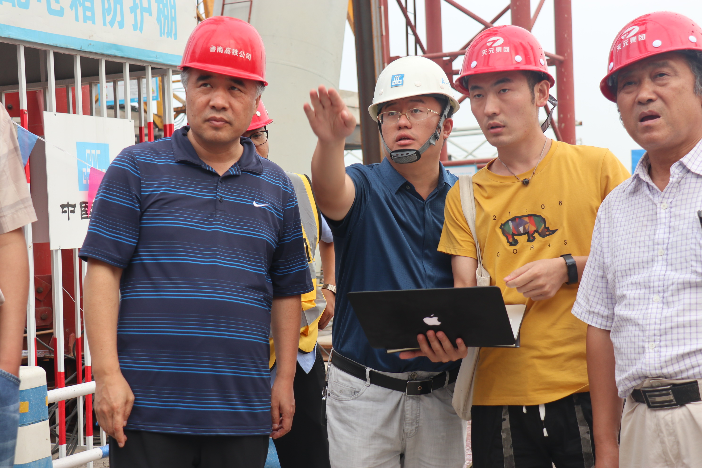 魯南公司監(jiān)事會主席王清村,臨沂大學(xué)美術(shù)學(xué)院教授牛振江,中聯(lián)筑境總工杜剛勇一行到魯南高鐵站房項目進行調(diào)研指導(dǎo)工作,項目經(jīng)理程飛、專職副書記呂培倫陪同調(diào)研。