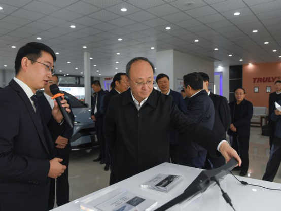 尹力一行首先在現(xiàn)場指揮部觀看了項目宣傳視頻,了解了項目的整體概況。隨后,一行人察看了燈箱片、沙盤以及信利產(chǎn)品應(yīng)用展示,聽取了項目規(guī)劃建設(shè)情況和產(chǎn)品情況的匯報。尹力表示:信利項目全面投產(chǎn)后對引進(jìn)電子信息上下游配套企業(yè),延伸產(chǎn)業(yè)鏈條,打造良好產(chǎn)業(yè)生態(tài)具有重要的帶動作用,他要求企業(yè)注重節(jié)約利用土地資源,持續(xù)提高投資強度和產(chǎn)出效益。