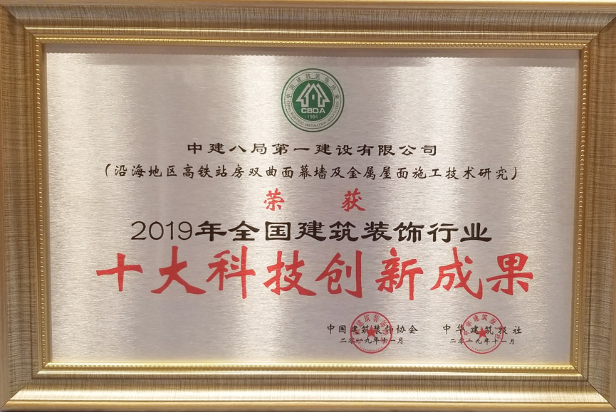 全國(guó)建筑裝飾行業(yè)十大科技創(chuàng)新成果”獎(jiǎng)