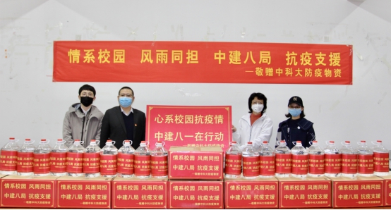 與此同時,華中公司黨總支書記彭超一行赴中國科學(xué)技術(shù)大學(xué)東校區(qū),代表八局向奮斗在教育一線的辛勤園丁和莘莘學(xué)子捐贈10000只醫(yī)用外科口罩和毒酒精等防疫物資,中科大就業(yè)指導(dǎo)中心魏英代表中國科學(xué)技術(shù)大學(xué)接收愛心捐贈物資。