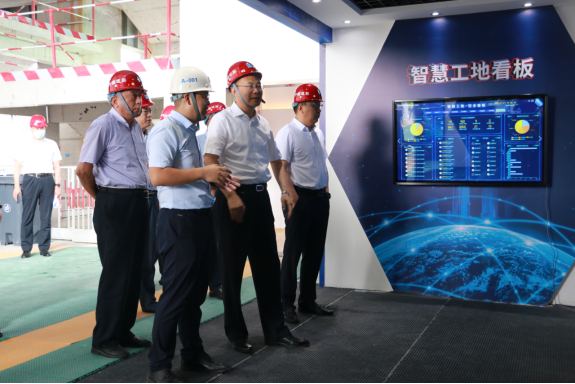 隨后,王京文一行參觀項(xiàng)目智能化體驗(yàn)館,展示智能化AI識(shí)別系統(tǒng)、塔吊鷹眼監(jiān)控系統(tǒng)、RAD八一智能建造館等科技成果。通過技術(shù)引領(lǐng)生產(chǎn)、利用智能化管理打造智慧工地是本項(xiàng)目建設(shè)中一直堅(jiān)持的宗旨,也是項(xiàng)目建設(shè)歷程中總結(jié)實(shí)踐出的高效率、高水平建造的可行道路。
