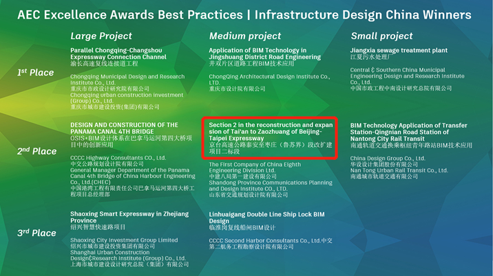 京臺高速改擴建項目二標(biāo)段榮獲2020全球工程建設(shè)業(yè)卓越BIM大賽最佳實踐獎第二名