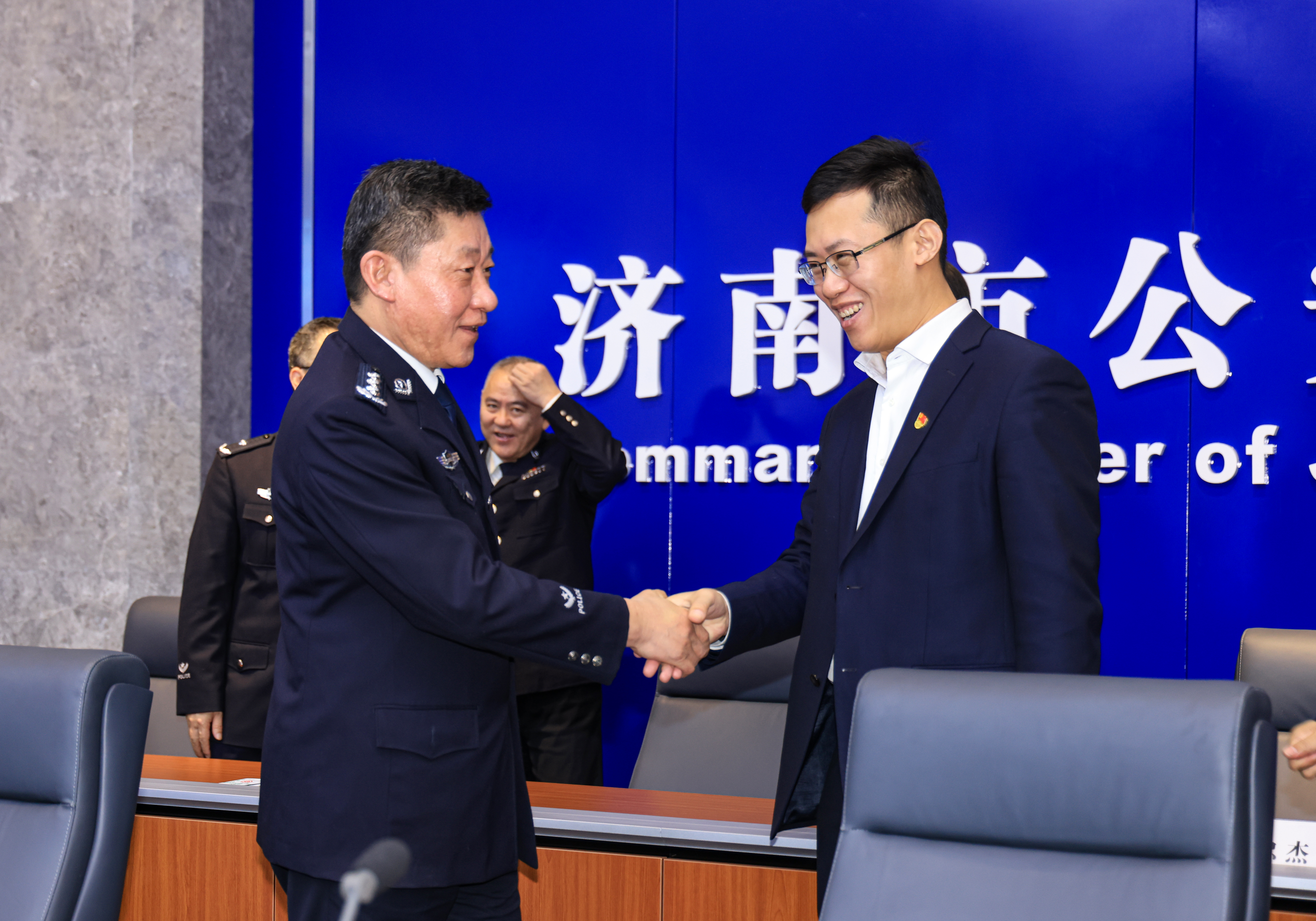 齊朋對濟南市公安局一直以來的信任與支持表示感謝,希望通過本次“黨建聯(lián)建 警企共建”活動,發(fā)揮警企合作優(yōu)勢,學(xué)習(xí)公安系統(tǒng)在黨建引領(lǐng)等方面的優(yōu)秀經(jīng)驗,為打造“五個濟南”、建設(shè)“大強美富通”城市貢獻力量。