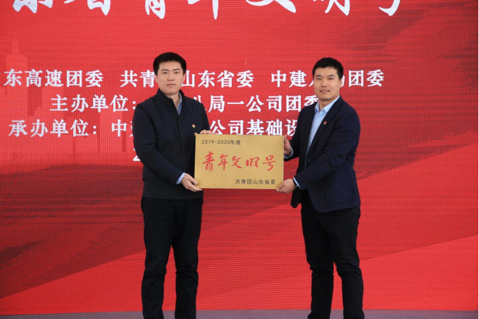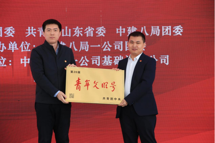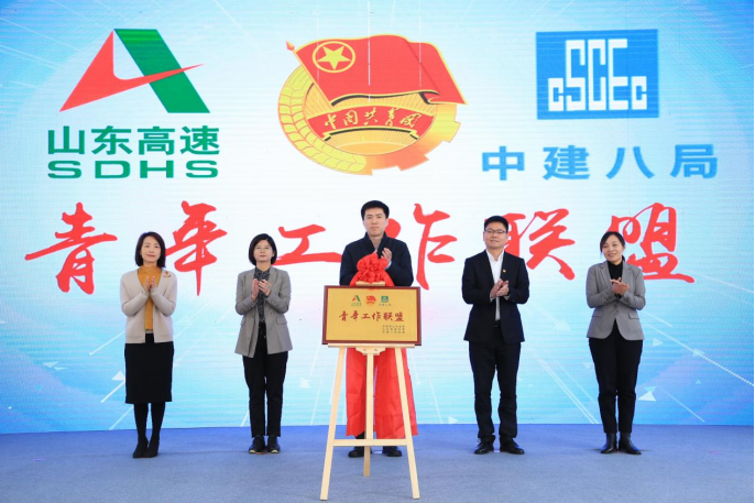 孫巍代表共青團山東省委授予中建八局一公司智慧建造設(shè)計研發(fā)法務(wù)團隊“山東省青年文明號”;授予中建八局一公司張傳奎項目團隊“全國青年文明號”。隨后,團省委、山東高速集團、中建八局共同為“青年工作聯(lián)盟”揭牌。