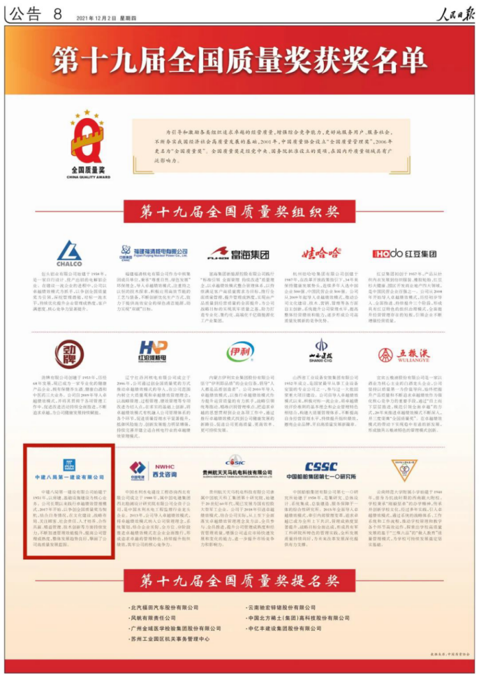 中建八一榮獲“全國質(zhì)量獎”!山東唯一建筑企業(yè)!