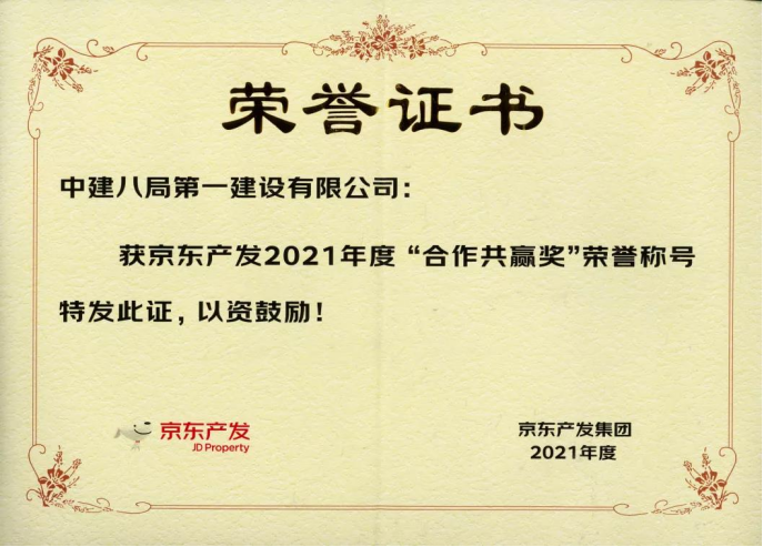 近日,中建八局一公司榮獲京東集團(tuán)頒發(fā)的“合作共贏獎(jiǎng)”,成為獎(jiǎng)項(xiàng)創(chuàng)立以來首次獲獎(jiǎng)的總承包施工單位,也是2021年京東集團(tuán)頒發(fā)的唯一一項(xiàng)“合作共贏獎(jiǎng)”。