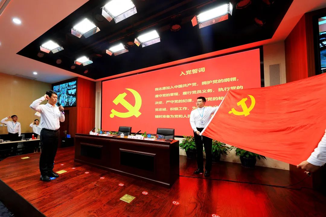 會(huì)議在雄壯的國歌聲中開始,齊朋帶領(lǐng)全體黨員重溫入黨誓詞,牢記黨的初心和使命。