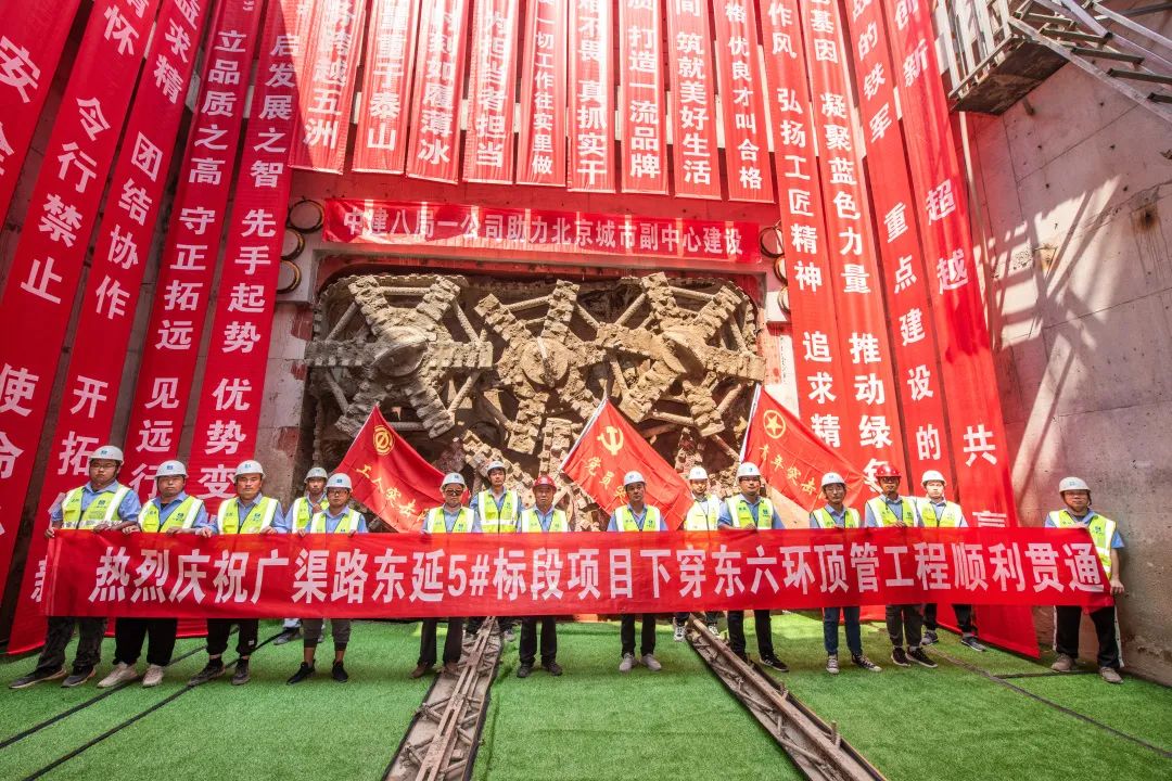 7月8日,北京廣渠路東延工程5#標段土壓平衡矩形頂管機“建通號”破土而出!標志著公司首個大斷面矩形頂管工程雙向貫通,在地下管廊施工領域實現新突破。