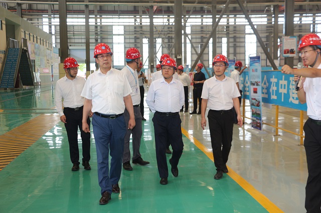隨后,來(lái)到第六跨疊合板自動(dòng)化流水生產(chǎn)線,寧文忠、李鐵軍共同為智能鋼筋綁扎機(jī)器人揭彩。該機(jī)器人是一種可視覺(jué)導(dǎo)引的六軸鋼筋綁扎機(jī)器人,安放在流水線的鋼筋綁扎區(qū)域,能夠高效精準(zhǔn)的進(jìn)行鋼筋綁扎工作,具有自動(dòng)識(shí)別,精準(zhǔn)高效、協(xié)同作業(yè)、一機(jī)雙控等特點(diǎn),綁扎速度是人工的2倍,大大提高鋼筋綁扎效率。