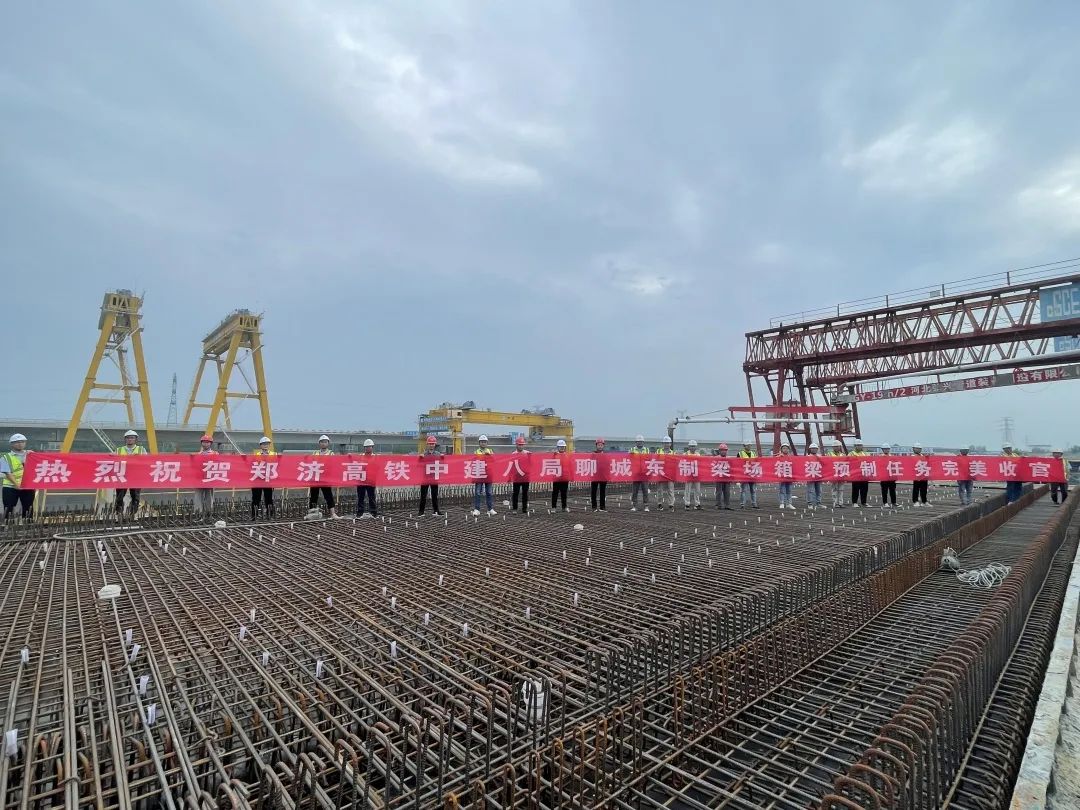 2020年7月9日,經(jīng)過5個工序、9個步驟,近1個月的時間,梁場生產(chǎn)出首孔雙線箱梁,經(jīng)過兩個半小時的搬、提、運、架組合為“高鐵脊梁”。2022年7月14日最后一孔高鐵箱梁預制完成,后續(xù)項目將繼續(xù)進行架梁工作及橋面施工,全部箱梁架設完畢后,聊城東制梁場將光榮“退休”。