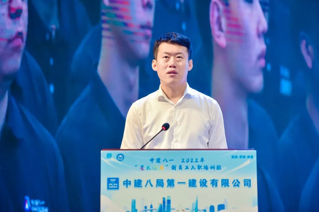 齊朋將代表中建精神的中建司旗授予新員工代表,希望大家迅速成長為一名出色的“中建八一人”,在公司高質(zhì)量發(fā)展進(jìn)程中綻放出最耀眼的光輝!