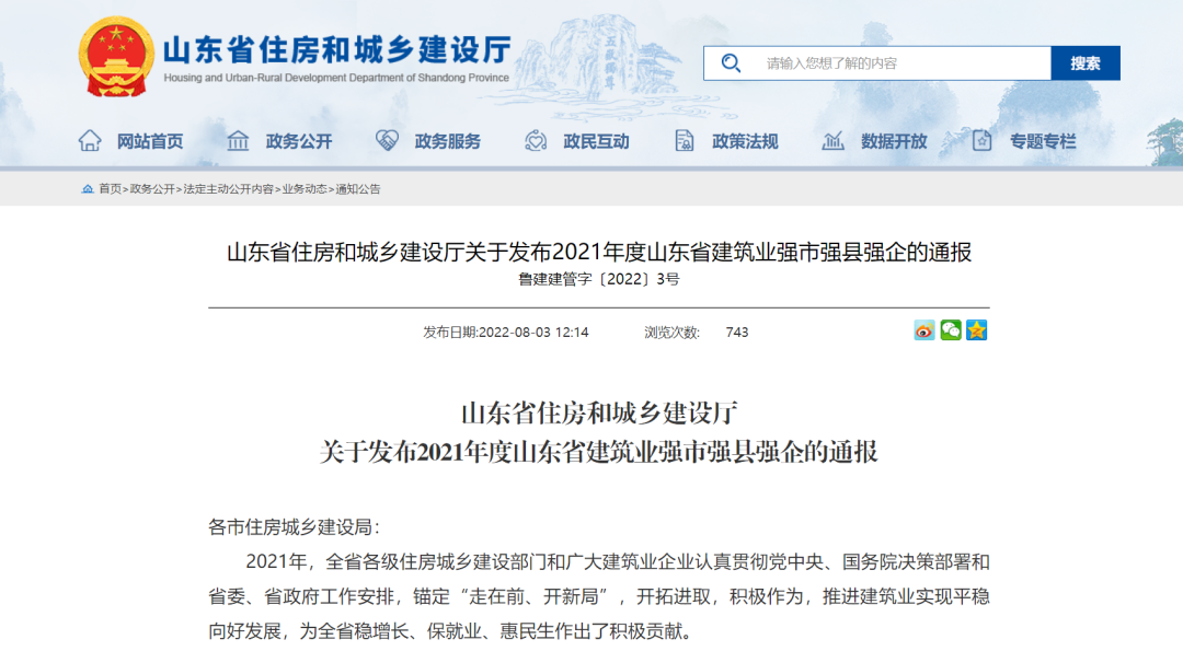 近日,山東省住房和城鄉(xiāng)建設(shè)廳印發(fā)《關(guān)于發(fā)布2021年度山東省建筑業(yè)強(qiáng)市強(qiáng)縣強(qiáng)企的通報(bào)》,中建八局一公司位列綜合實(shí)力30強(qiáng)企第2名,較上屆排名晉升2位,目前已連續(xù)5年蟬聯(lián)山東省建筑企業(yè)前4強(qiáng)。