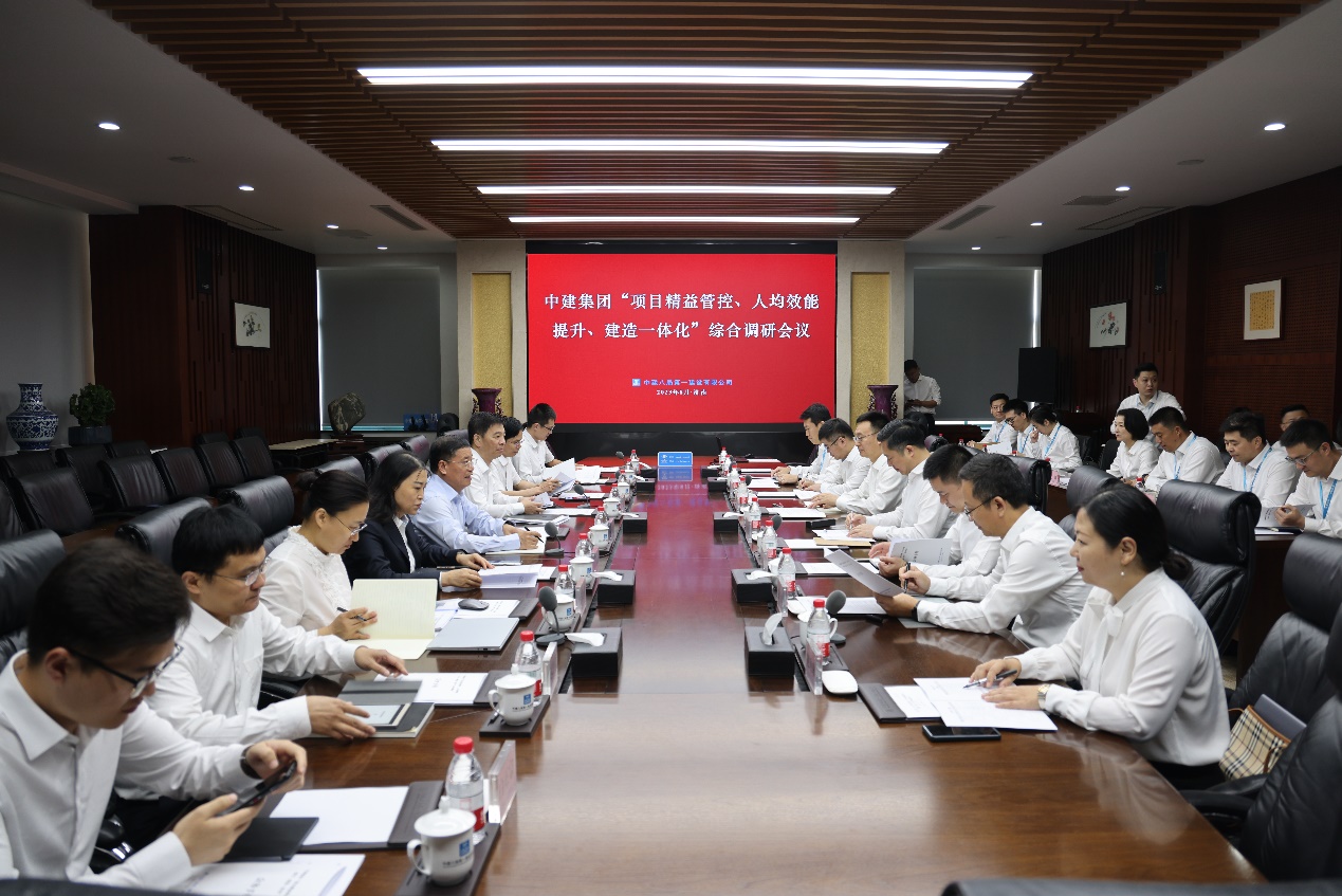 李建偉主持會(huì)議,介紹了本次調(diào)研的背景、目的和相關(guān)工作要求。方思忠代表中建八局向調(diào)研組的到來(lái)表示歡迎,從紅色基因、對(duì)標(biāo)學(xué)習(xí)、執(zhí)行力文化、高目標(biāo)牽引等方面,介紹了中建八局一公司發(fā)展歷程及高質(zhì)量發(fā)展優(yōu)勢(shì)。齊朋從企業(yè)基本情況、精益管控、人均效能、建造一體化、黨的建設(shè)等情況作綜合匯報(bào)。