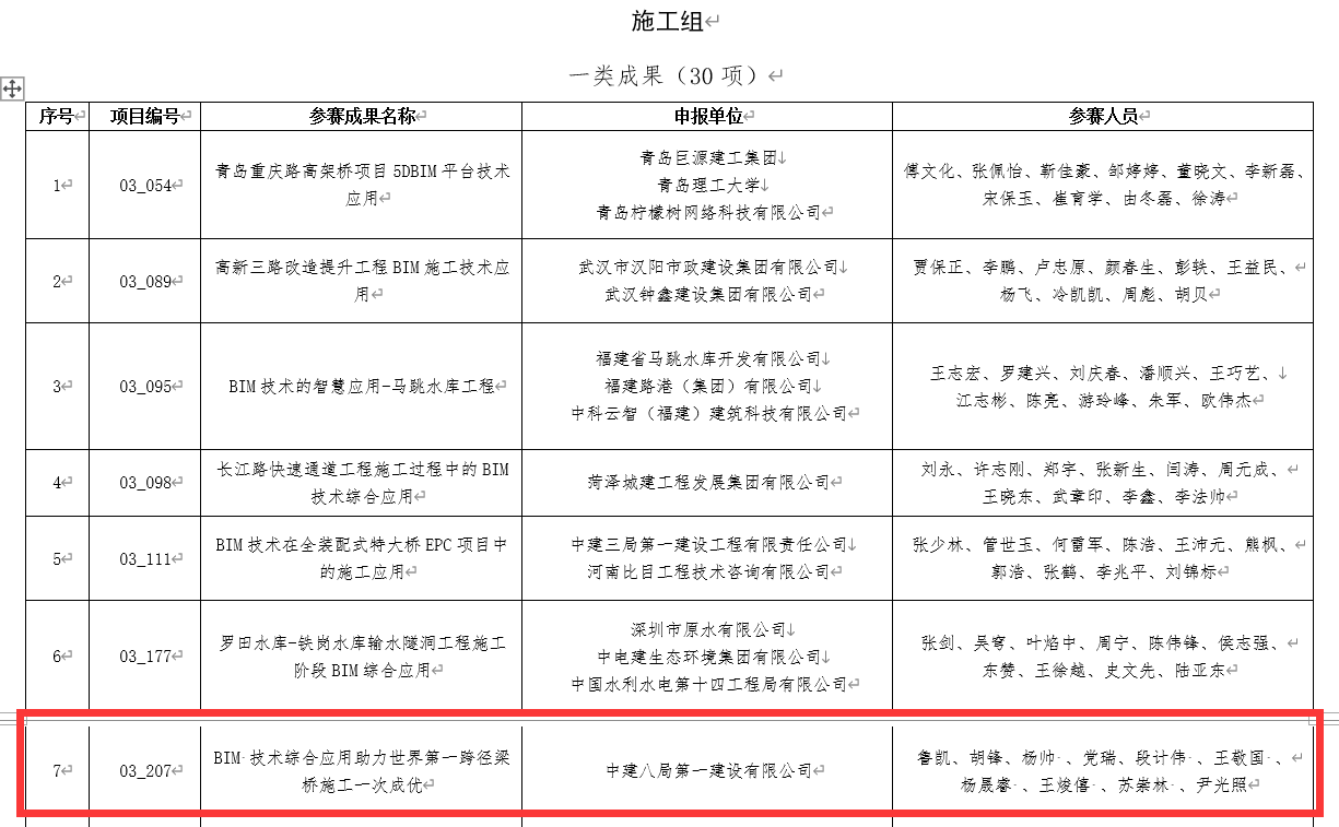 BIM參賽團(tuán)隊(duì)由中建八一基礎(chǔ)設(shè)施公司總工程師魯凱為組長(zhǎng),項(xiàng)目經(jīng)理胡鋒擔(dān)任副組長(zhǎng),充分發(fā)揮了團(tuán)隊(duì)的協(xié)作創(chuàng)新精神。參賽成果通過(guò)對(duì)項(xiàng)目目前BIM基礎(chǔ)和創(chuàng)新應(yīng)用的成果展示、自主研發(fā)應(yīng)用系統(tǒng)、利用BIM技術(shù)輔助專(zhuān)利申請(qǐng)等,豐富了BIM發(fā)展新領(lǐng)域,獲得到了專(zhuān)家評(píng)審的高度評(píng)價(jià)。