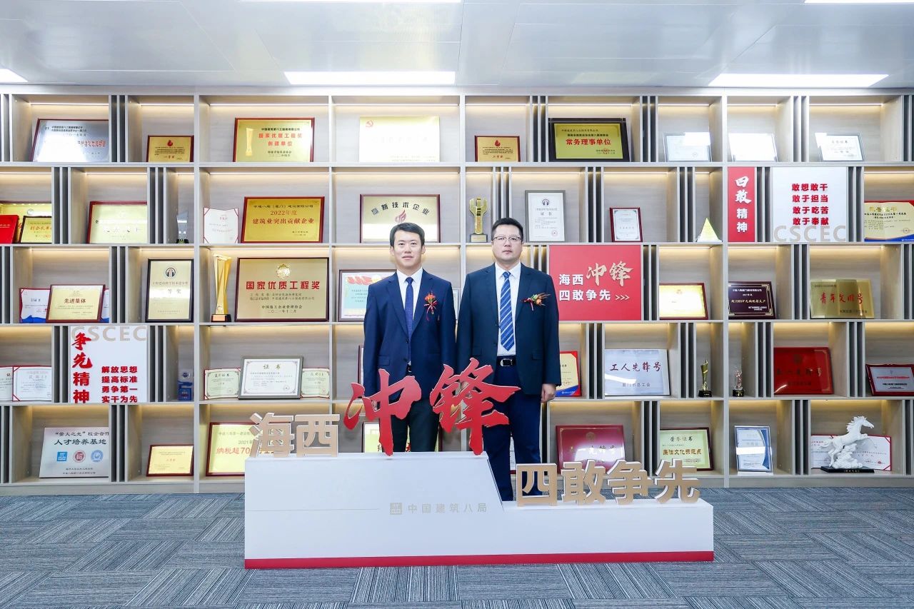 儀式上,齊朋、欒金鋒共同為中建八局東南建設(shè)有限公司、“海西沖鋒 四敢爭(zhēng)先”黨建品牌揭牌。