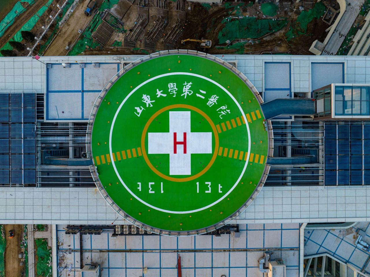 項目設有停機坪,最大起飛重量13噸,中心標高55.7米,是完全具備24小時全天候響應的空中救援通道,可輻射山東半島地區(qū)各類危重患者轉運救助,完善山東及周邊應急救援體系與醫(yī)療救援體系建設。目前,項目正處于竣工收尾階段,預計2023年底達到竣工交付條件。