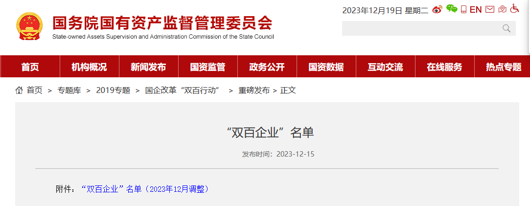 中建八局一公司上榜國(guó)務(wù)院國(guó)資委“雙百企業(yè)”