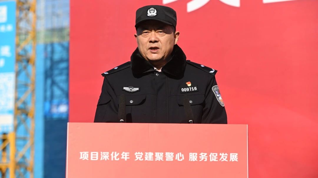 濟南市公安局重點工程保衛(wèi)支隊支隊長趙鋒,槐蔭分局政委鄭繼明,副局長陳永杰,市公安局重保支隊副支隊長范躍軍,山東省立三院事業(yè)發(fā)展部主任張璞,山東省大眾健康管理中心主任李令國,中建八局一公司紀(jì)委書記徐紅志,各單位相關(guān)負責(zé)人及現(xiàn)場工友共計300余人參加活動。