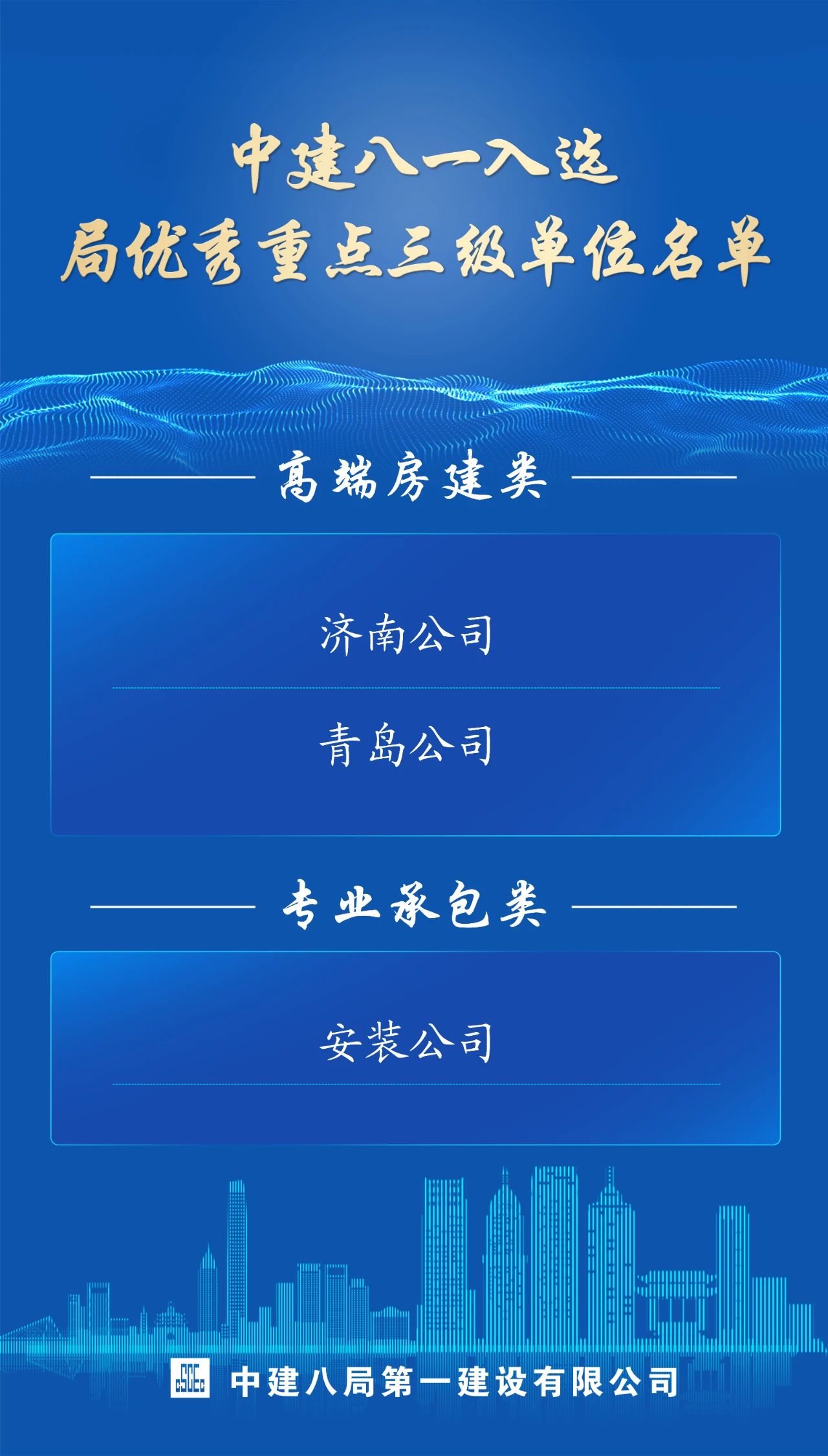 7月22日,中建八局2023年度優(yōu)秀重點(diǎn)三級單位名單公布,中建八一共3家單位上榜,其中,濟(jì)南公司、安裝公司分別位列高端房建類、專業(yè)承包類第一名。