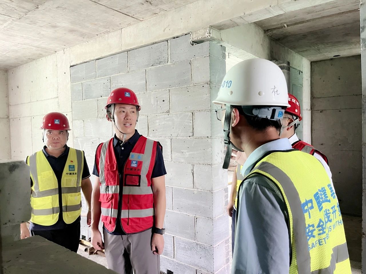 在青島市紅島安置房東部組團(tuán)項(xiàng)目,齊朋深入施工現(xiàn)場,詳細(xì)檢查現(xiàn)場實(shí)體質(zhì)量、在建樓層、地下室、樓屋面等關(guān)鍵區(qū)域,全面了解項(xiàng)目策劃、質(zhì)量控制、安全生產(chǎn)以及文明施工等各項(xiàng)工作的執(zhí)行情況。他指出,要貫徹全員安全生產(chǎn)責(zé)任制,強(qiáng)化現(xiàn)場機(jī)械設(shè)備管理、專業(yè)分包進(jìn)場指導(dǎo)、安全教育培訓(xùn),提升全員安全生產(chǎn)意識;要加強(qiáng)對工友的教育和管理,落實(shí)工友集中就餐,避免生活垃圾對現(xiàn)場環(huán)境造成影響;要強(qiáng)化文明施工管理,特別是對地下室、邊邊角角等的管控,確保文明施工全覆蓋、無死角;要做好工序穿插,確保在外架拆除后,及時(shí)完成坡屋面及檐溝的防護(hù)搭建工作,有序推進(jìn)各項(xiàng)節(jié)點(diǎn)目標(biāo);要強(qiáng)化責(zé)任擔(dān)當(dāng),提高施工標(biāo)準(zhǔn)與質(zhì)量,確保“一次成優(yōu)”,為項(xiàng)目完美履約提供有力保障。