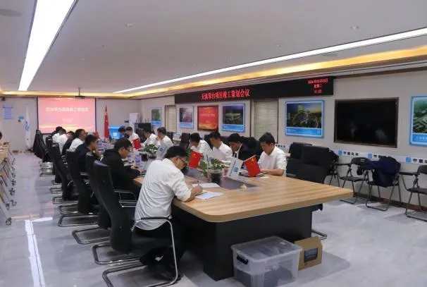 現(xiàn)場踏勘后,項目經(jīng)理從項目概況、項目重難點、施工組織、安全質(zhì)量風(fēng)險點識別、資源支撐計劃等方面進行匯報。施工管理組、技術(shù)組、安裝組、商法采購財務(wù)組依次發(fā)言,為項目“高效建造、完美履約”獻計獻策。