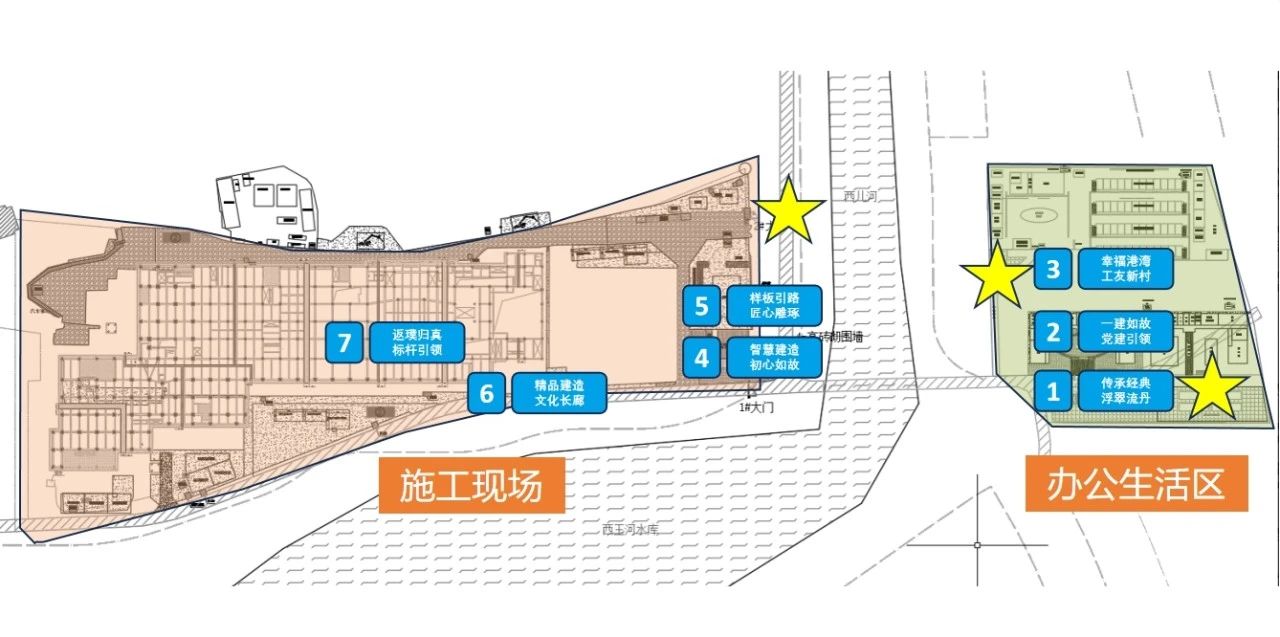 項目堅持黨建引領(lǐng),打造“建證·一建如故”黨建工作品牌,融合故宮文化元素,建設仿古花園式辦公區(qū),設置黨員活動室、青年之家職工書屋、工友幸福村等載體,打造豐富項目隊伍組織和文化生活的重要實踐場所,助力項目高效建造、完美履約。