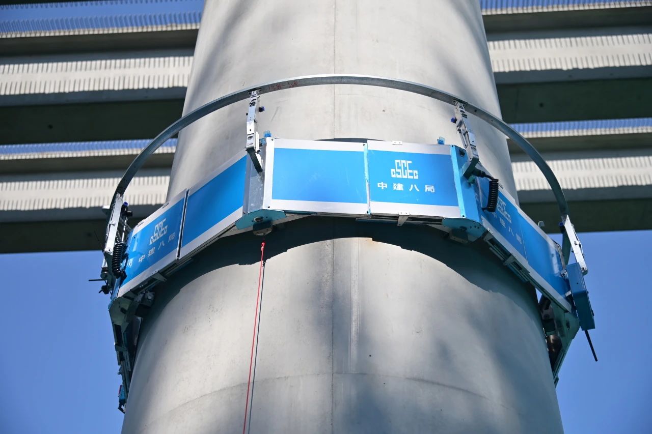 RC智柱俠由折疊式桁架平臺檢測系統(tǒng)、養(yǎng)護系統(tǒng)及數(shù)據(jù)收集分析系統(tǒng)組成,可快速完成墩柱任一斷面鋼筋保護層、鋼筋間距檢測,同時進行及時養(yǎng)護,實現(xiàn)“高精度、全方位”智能化養(yǎng)護-檢測作業(yè),檢測效率較傳統(tǒng)方式提升3倍以上,目前在京臺高速齊河至濟南段改擴建項目應用。