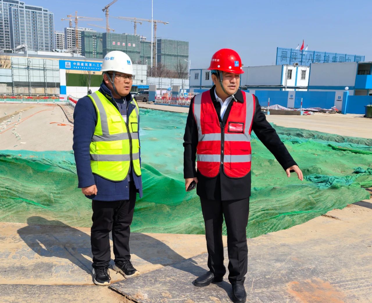 2月24日,中建八局一公司黨委副書記、總經(jīng)理?;瘧椄澳暇┭嘧哟壭鲁荈地塊小學項目開展“四不兩直”安全帶班檢查,副總經(jīng)理辛建龍參加檢查。