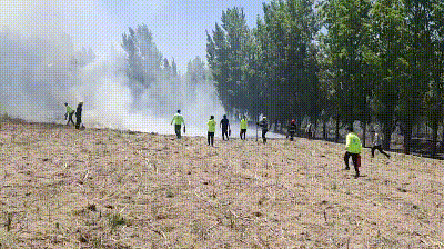 項(xiàng)目救火隊(duì)到達(dá)火場(chǎng)時(shí),當(dāng)?shù)叵狸?duì)也已經(jīng)抵達(dá),此時(shí)的火情現(xiàn)場(chǎng)濃煙蔽空,刺鼻的焦糊味裹挾著熱浪撲面而來(lái),柳絮燃燒形成的火焰借著風(fēng)勢(shì),沿著干枯植被與低矮灌木叢擴(kuò)張,極有可能蔓延至兩邊的村莊與農(nóng)田。