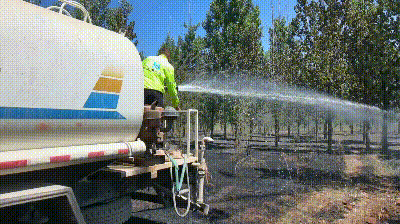 大家按照預(yù)案快速分成三組,與屬地消防隊(duì)開(kāi)始聯(lián)合行動(dòng),一組隊(duì)員手持干粉滅火器,以扇形戰(zhàn)術(shù)向火場(chǎng)核心推進(jìn),撲滅點(diǎn)狀火源;二組隊(duì)員駕駛灑水車構(gòu)建“水幕墻”,截?cái)嗷饎?shì)蔓延的路徑,并為當(dāng)?shù)叵儡囇a(bǔ)充水源;三組隊(duì)員揮動(dòng)斧頭鐵鍬,在火場(chǎng)外圍緊急開(kāi)辟防火隔離帶,嚴(yán)防飛火復(fù)燃。隨著項(xiàng)目與當(dāng)?shù)叵狸?duì)員的通力協(xié)作,1小時(shí)后現(xiàn)場(chǎng)明火已經(jīng)基本撲滅,此時(shí)火場(chǎng)與麥田僅僅一線之隔。