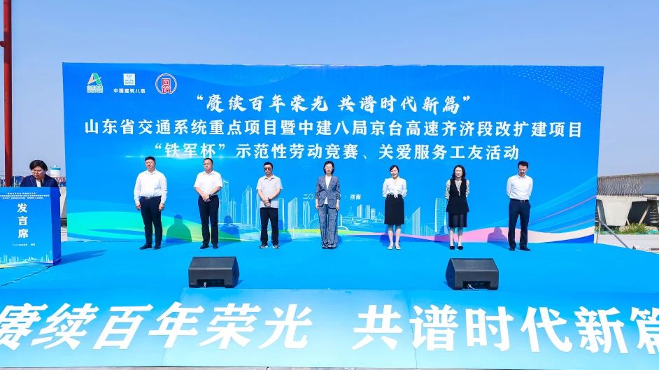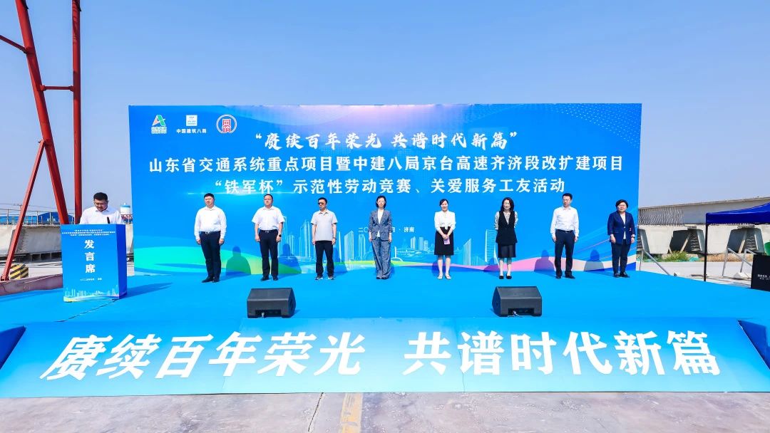 開啟夏日攻堅,建功交通強(qiáng)國。5月27日,山東省交通系統(tǒng)重點項目暨中建八局“鐵軍杯”示范性勞動競賽、關(guān)愛服務(wù)工友活動在中建八局承建的京臺高速齊濟(jì)段改擴(kuò)建項目正式啟動,吹響履約奮進(jìn)“沖鋒號”。